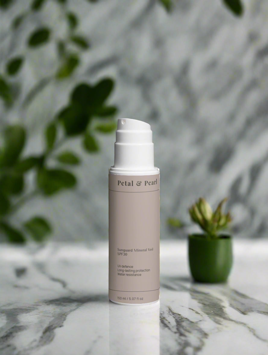 SunGuard Mineral Veil: Enriched with mineral-based ingredients, this sunscreen offers broad-spectrum sun protection and prevents the skin from premature aging. Tested for water resistance.